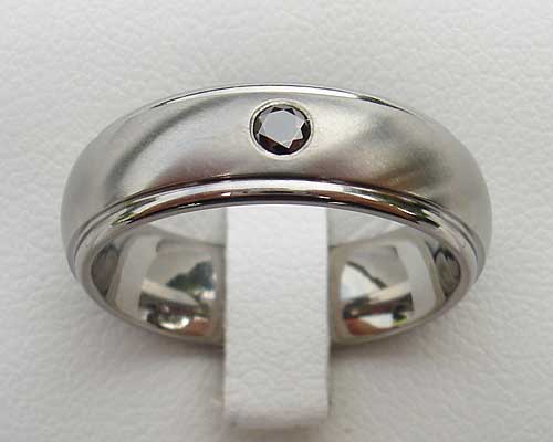 The ring is made from titanium which makes an excellent choice of metal for diamond wedding rings, and this particular one would suit a man or a woman. The hardened metals composition sets the black diamond securely into the surface.