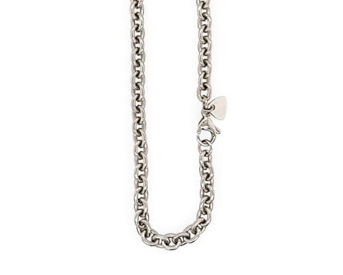 Timeless, simple, and effortlessly wearable, this polished titanium trace chain necklace is a staple piece for any jewellery collection. Featuring uniform, interlocking round links, the classic trace design offers a clean and balanced look that works with any style. Finished with a smooth, high polish, the chain subtly reflects light, creating a refined yet understated shine. Its minimalist design makes it perfect to wear alone for a sleek look, or to pair with a pendant or layer with other chains.