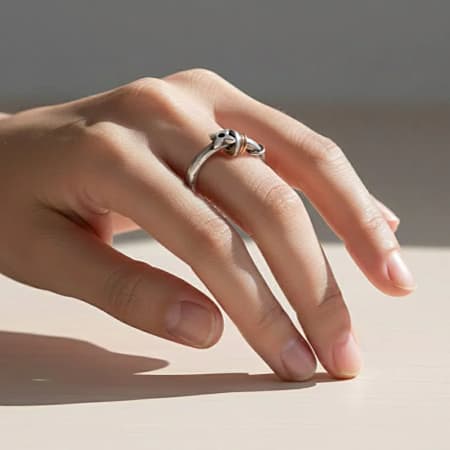 Rugged, modern, and perfect for lovers of unconventional jewellery with added texture and movement. Its subtly hammered band enhances the handmade, artisan character, perfect for anyone who appreciates distinctive, creative metalwork. An ideal statement piece for everyday wear. Bold, stylish, and truly unique. The mixed-metal placement adds contrast and dimension, making this an eye-catching accessory for both men and women who love mechanical, edgy, or artisan jewellery.