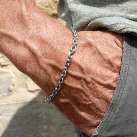 Crafted from high-quality titanium, this bracelet is lightweight, durable, and hypoallergenic, making it ideal for sensitive skin and long-lasting daily use. Finished with subtle branded detail, this piece is a versatile addition to any jewellery collection. Our titanium chain bracelets for men are a superb alternative to the other popular metal on our website: sterling silver. Not only is titanium much tougher, but it is also far less expensive.