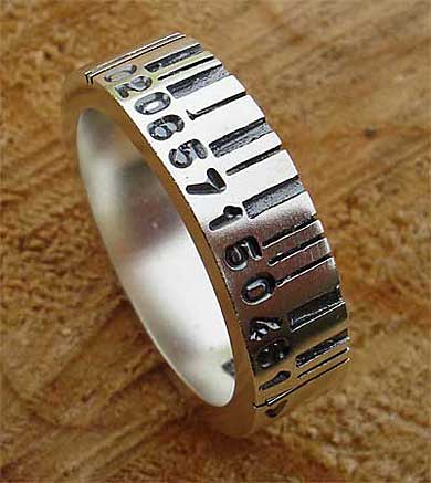 The wider 12mm version of this ring makes a great mens personalised ring but please note that careful consideration in regarding fitting is required, so we would recommend you try our blanks first before buying. Please see our ring sizing service via the link in the categories menu on the left. The barcode can be personalised with numbers and letters on request (a minimum of 0 and maximum of 15) depending on the size of the ring. To specify your engraving, you will find a comments box at checkout.