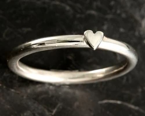 A simple and elegant silver ring featuring a small heart detail at the top centre. The heart sits seamlessly on the polished band, giving the piece a minimalist and delicate appearance.